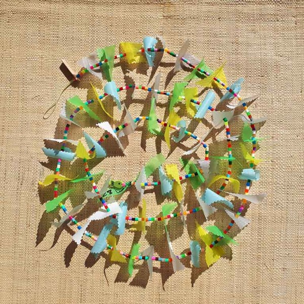 Guirlande tissu de spinnaker et perles multicolores n°28 (lundi de Pâques)