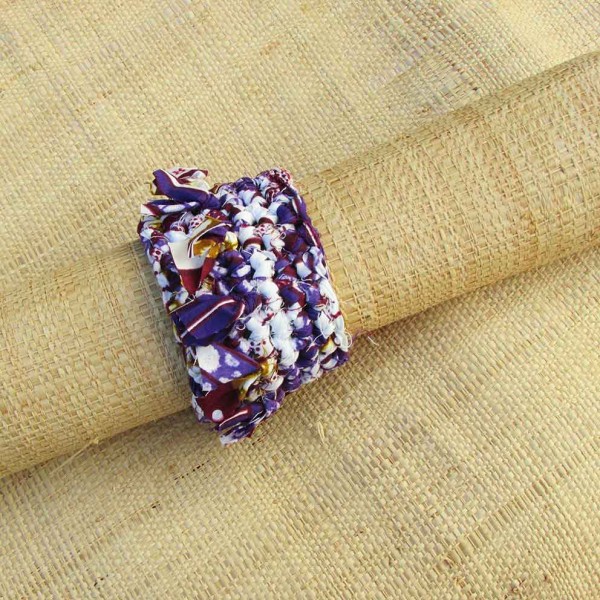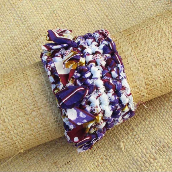 Manchette en wax violet, bordeaux, moutarde et blanc avec franges